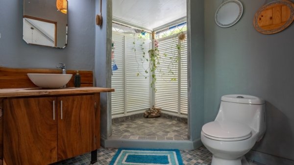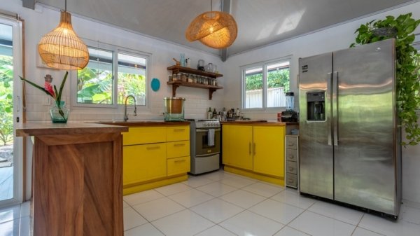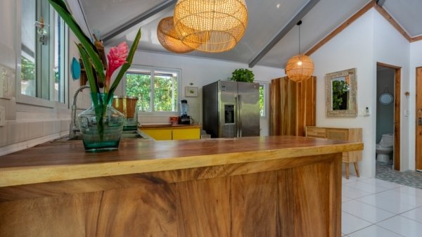 Located in Bahia de Uvita, this beautiful bungalow is within walking distance to the tropical shores at Marino Ballena National Park. Also in close proximity are the amenities of Uvita, such as supermarkets, hardware stores, restaurants, and health clinics. Another notable advantage of this specific location is that the property is on a dead-end street in a quiet neighborhood. There are no truck noises nor the constant passing of motorcycles. It’s a peaceful area with modest-sized homes and friendly neighbors!