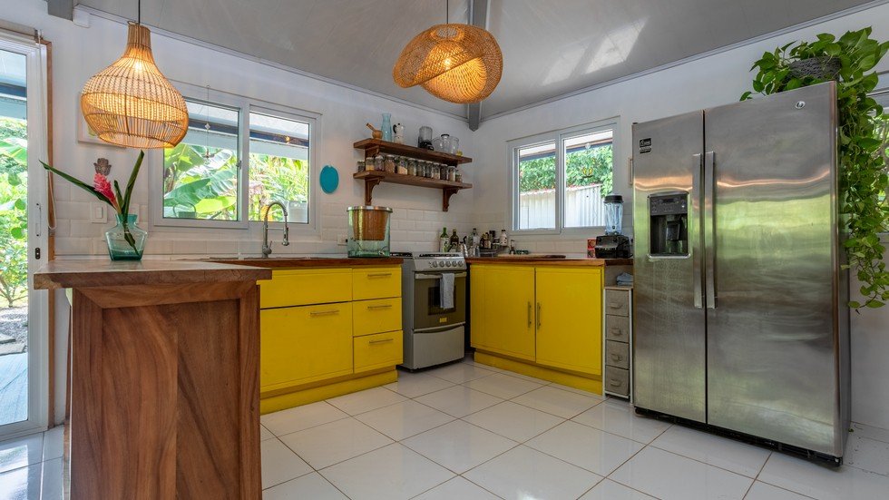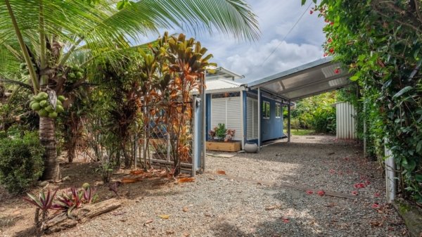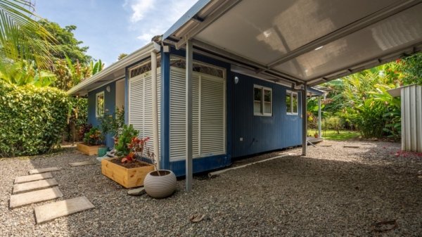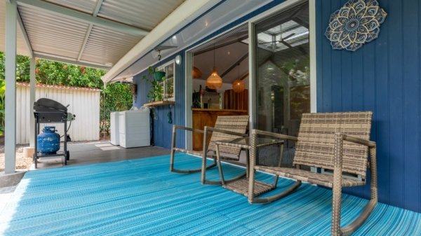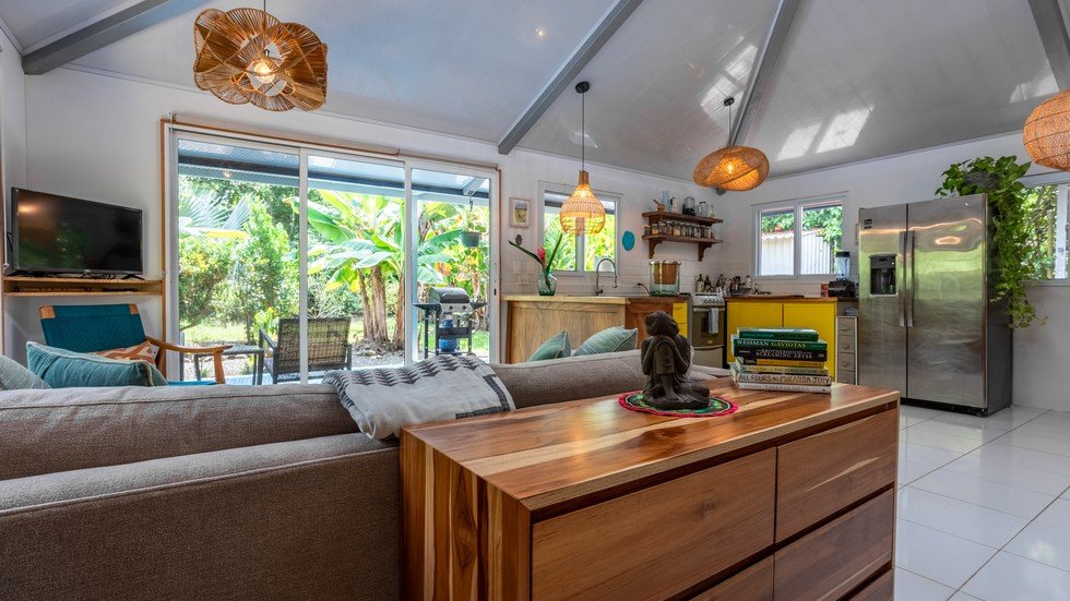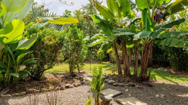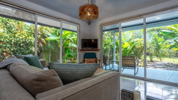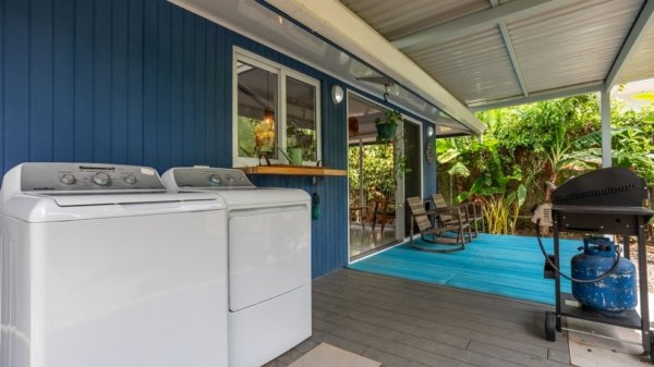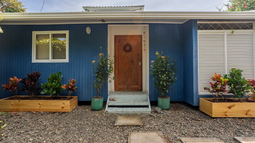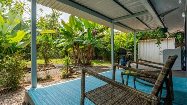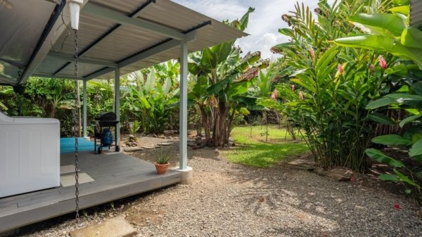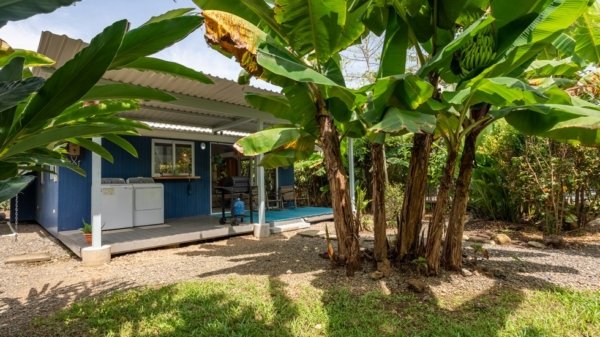 Currently, the backyard is a little oasis of tropical flowers, Ylang-ylang trees, bananas, and various tropical plants. There is plenty of space to add a pool or another structure if needed. Otherwise, the backyard provides a private sanctuary of green space for watching the visiting birds and butterflies.