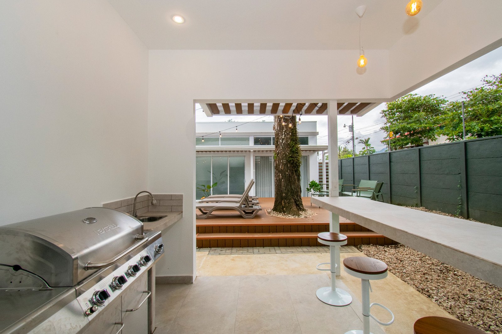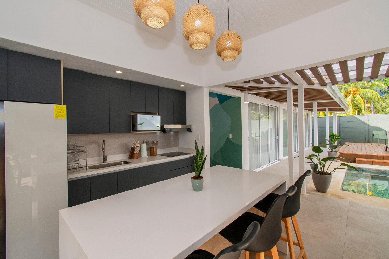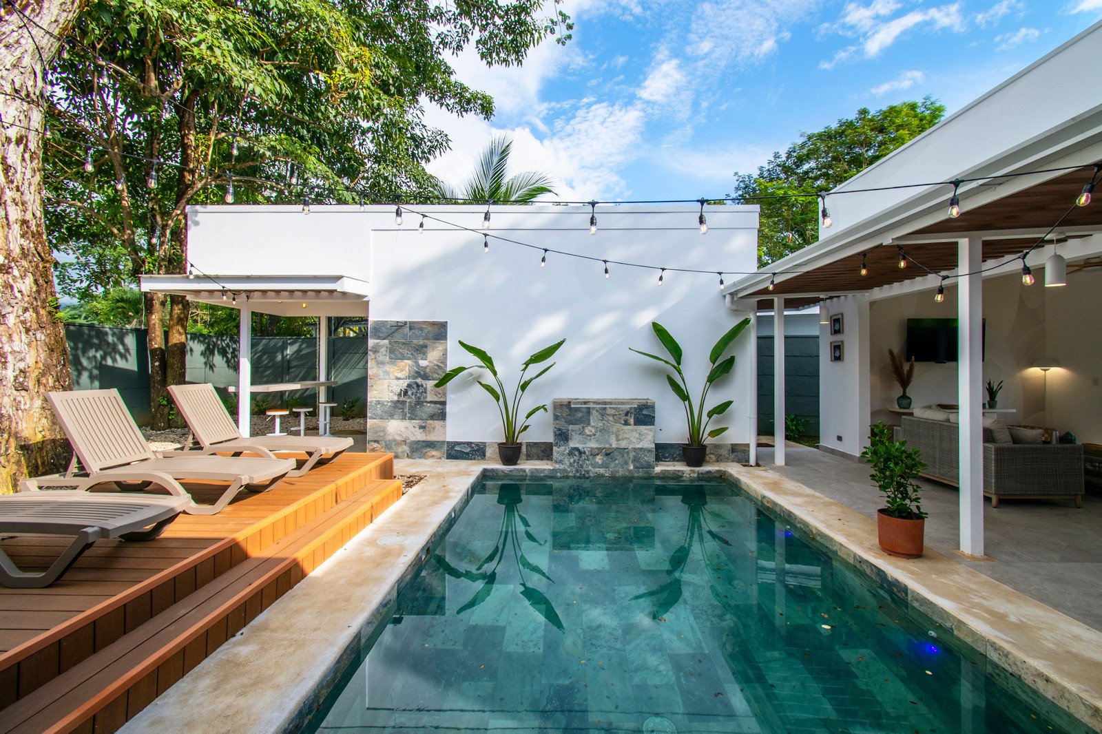 This stunning open-concept residence is a true architectural statement, thoughtfully designed around a magnificent mature tree that stands at the heart of the home. The result is a seamless indoor-outdoor living experience that feels both grounded in nature and elevated in design. Every space has been carefully curated with stylish décor and unique architectural details that reflect the beauty and rhythm of Costa Rica’s tropical environment.