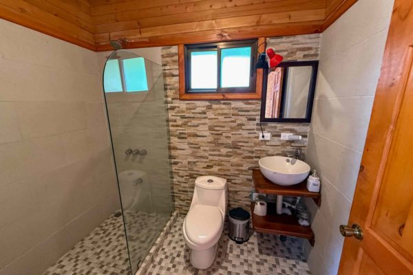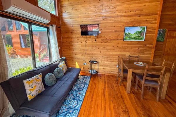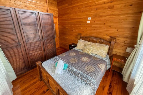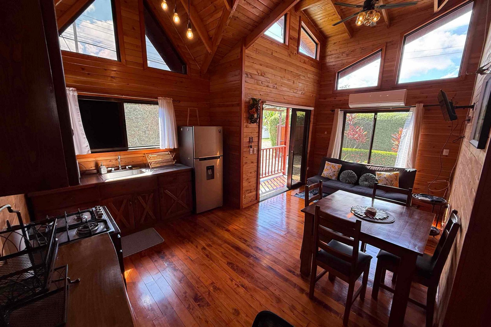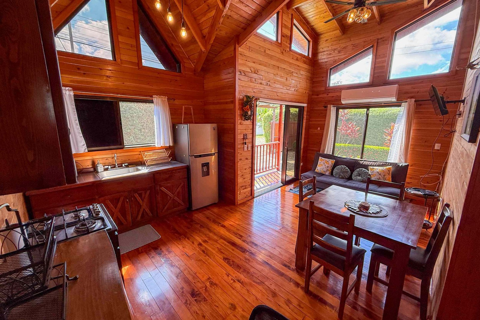 Main Cabin: Features a spacious 3-bedroom, 2-bathroom layout. The warm wood interior creates a cozy, organic feel, while high-efficiency A/C in every room ensures you stay cool during the tropical afternoons until the cool ocean breezes take over at night.