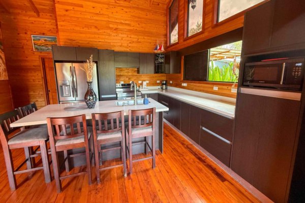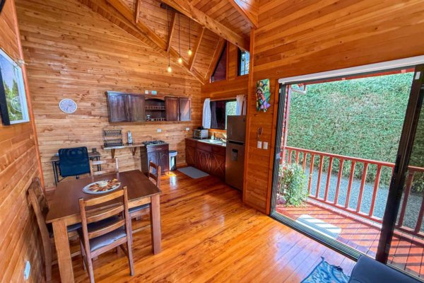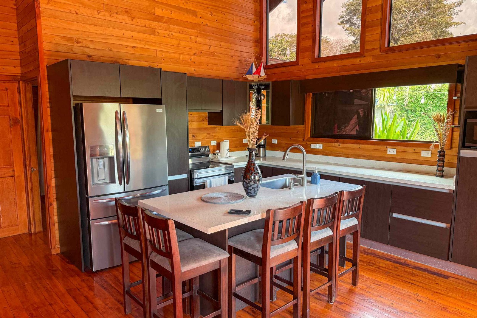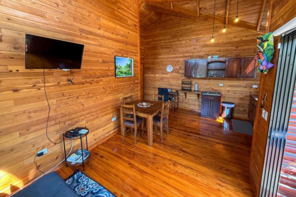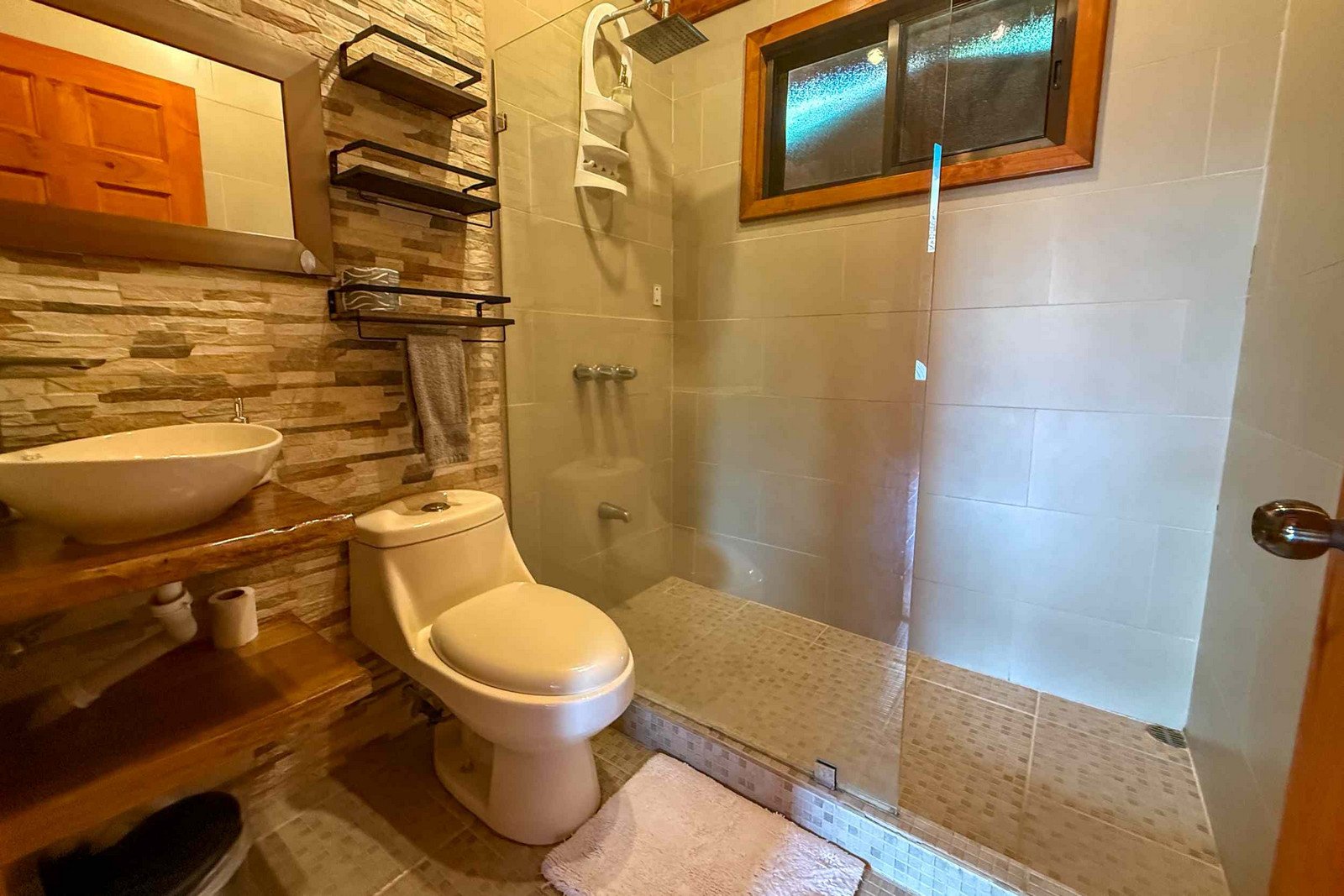 Main Cabin: Features a spacious 3-bedroom, 2-bathroom layout. The warm wood interior creates a cozy, organic feel, while high-efficiency A/C in every room ensures you stay cool during the tropical afternoons until the cool ocean breezes take over at night.