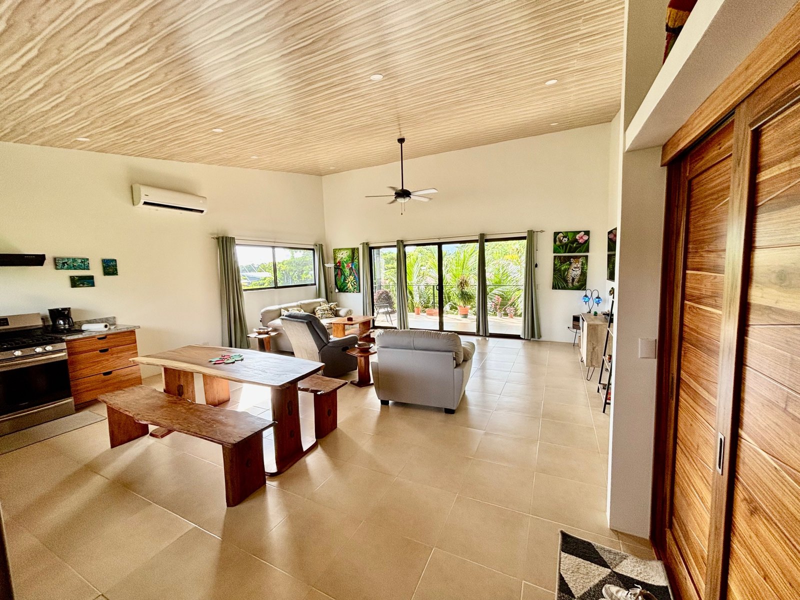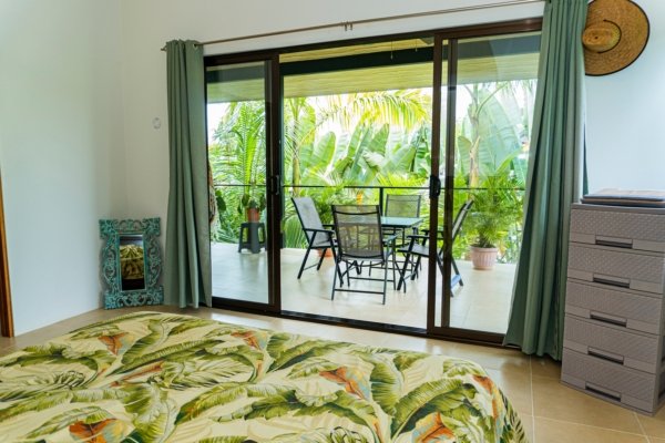Start your mornings on the covered deck with a cup of coffee, listening to the relaxing sounds of distant howler monkeys, ocean waves, and tropical bird calls. A family of toucans often visits just outside the bedroom window, while beautiful Scarlet Macaws fly overhead daily, often stopping by the almond trees.