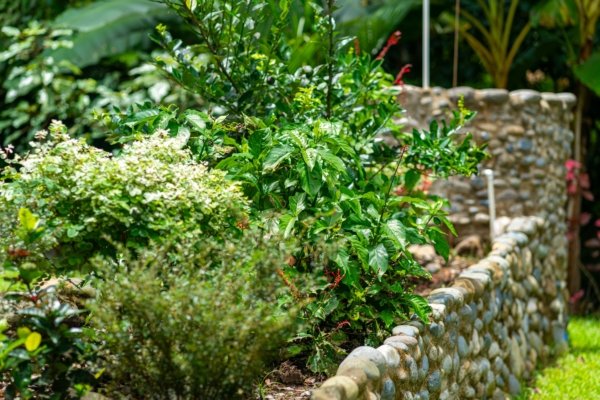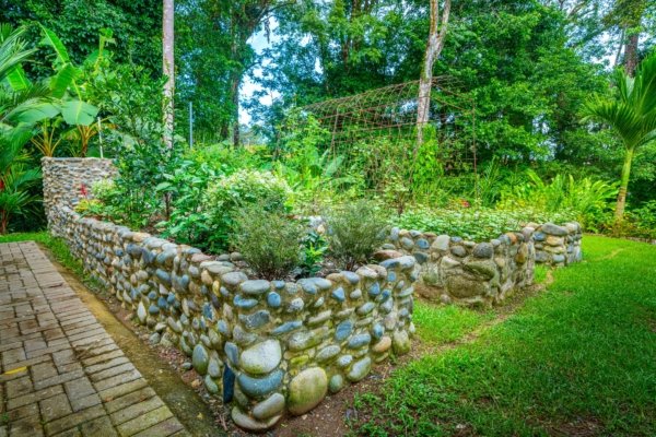 Another feature that sets this property apart is the organic hobby orchard and edible landscape that have been lovingly cultivated without chemical fertilizers or sprays—ever. The land is home to a wide variety of over 75 fruit trees and tropical edibles, including over 20 banana trees, 5 plantains, 15 papaya trees (two types), multiple citrus trees such as orange, mandarin, lemon, lime, and grapefruit, as well as rarer finds like mangosteen, jackfruit, cemepedak, rambutan, mango, cacao, avocado, apple, cherry, and mixed berry bushes, and over 100 pineapples. There are also four dwarf coconut palms, passionfruit and granadilla vines. Medicinal and culinary plants thrive here too, with ginger, mint, aloe, and Pau d’Arco trees found throughout the property along with the fragrant Ylang Ylang tree. The garden are currently planted with sweet potatoes, and cucumbers grow beautifully on a custom trellis system. Asparagus bushes are also established, adding to the home’s truly self-sustaining potential.