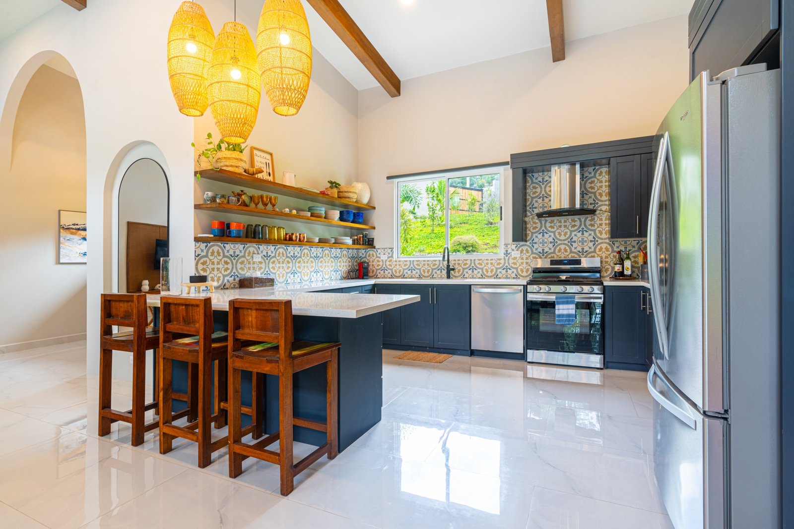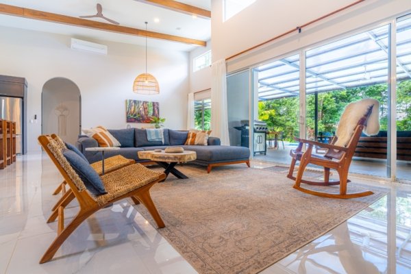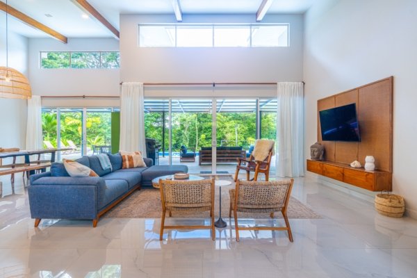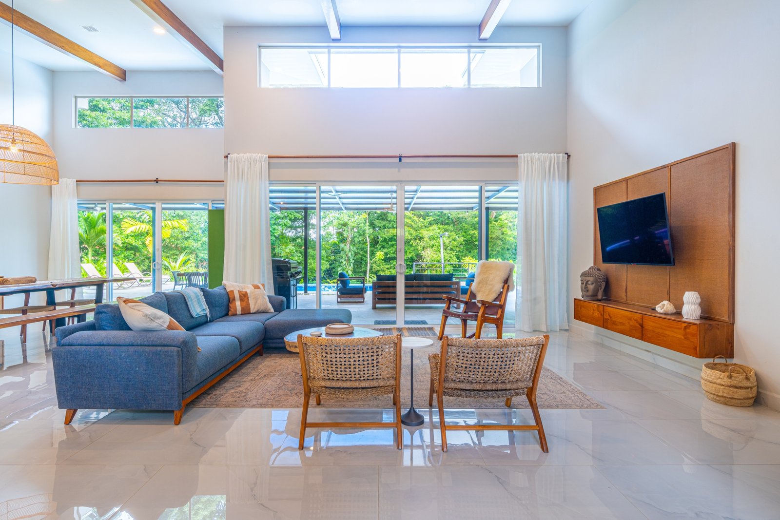 This exceptional property sits on nearly 1.5 acres of fully usable land and the property is bordered by a year-round creek and a fully fenced yard, offering the perfect blend of luxury, sustainability, natural abundance, and security, all less than five minutes from world-class surfing and some of Costa Rica’s most stunning beaches. The home has been thoughtfully updated throughout with a solar power system, significantly reducing energy costs and ensures sustainable living. Legal water with a whole home water filtration system provides an abundance of water adding to the self-sufficiency of the property.