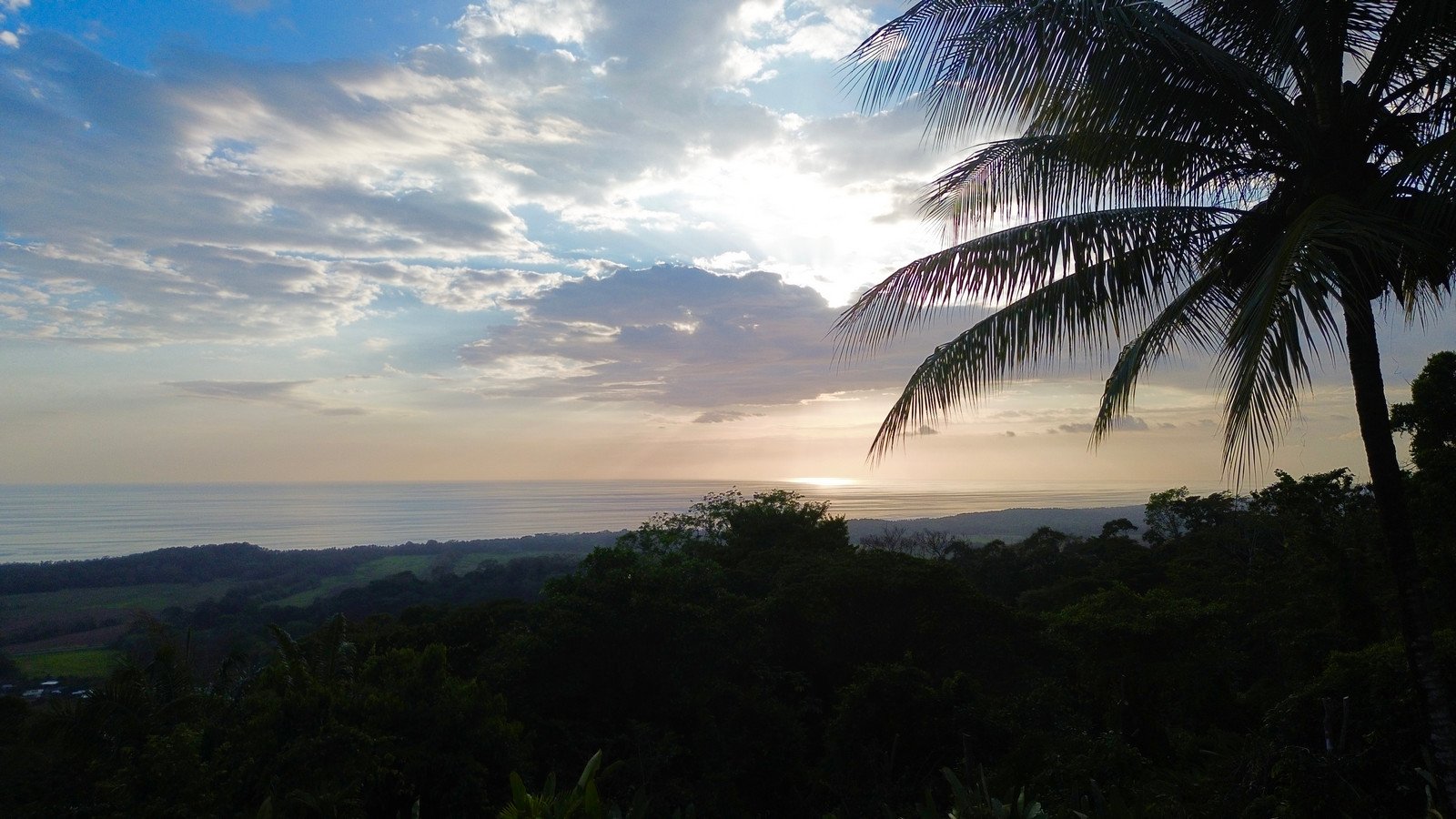 From the elevated building site at 210 meters above sea level, the property captures sweeping SW facing views, where you can see the beach and white water breaking on the shore, along with vibrant sunsets sinking into the Pacific. The orientation at 252 degrees west ensures unforgettable golden hour and sunset vistas year round, while the sound of the waves provides a constant connection to the ocean below. In addition to ocean views, the land also enjoys distant river views, creating a layered and immersive natural setting.