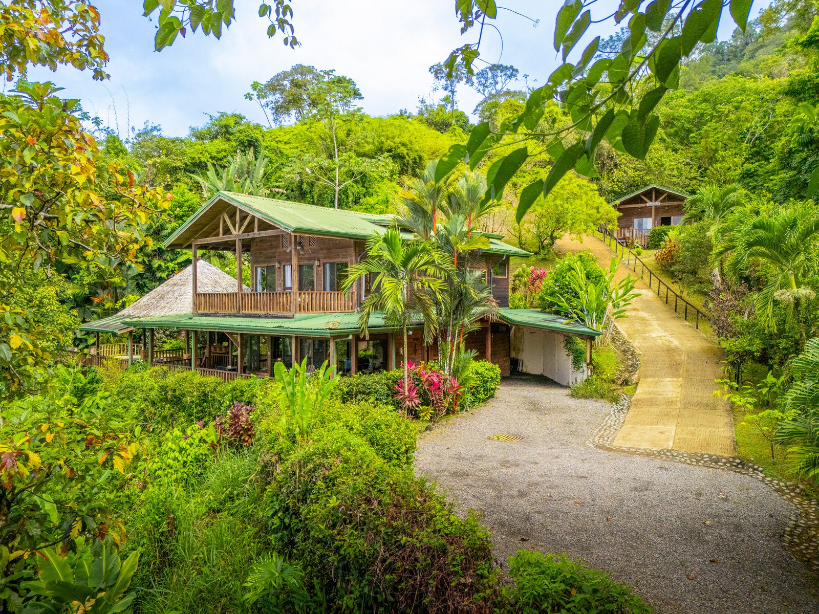 Casita Maria Kristina has a charm all her own. Sitting at the top of the property this second private space is a studio cabina with full kitchen, generous washroom and ample space for a living area and kitchen table. Odd are you spend most of your time on the deck enjoying the views and watching the wildlife play while being serenaded by a multitude of song birds. With its completely separate storage and laundry facility this can be used as an independent rental or managers residence. The concrete engineered driveway provides easy and safe access to both no matter the season.