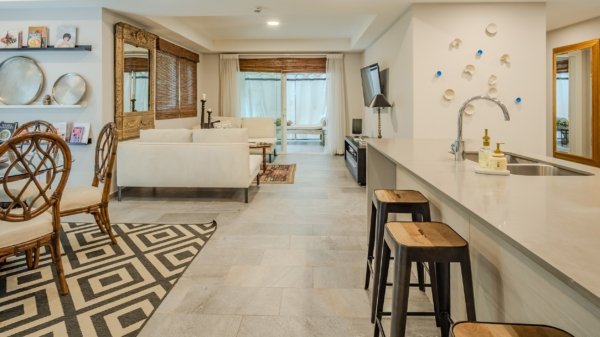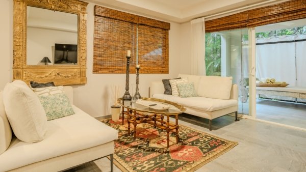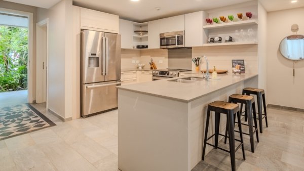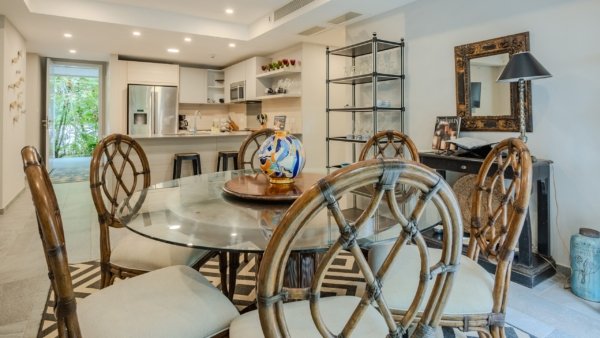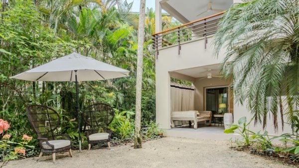 This 2-bedroom, 2.5-bath unit is in a prime, private location, surrounded by lush jungle. Features include ensuite bathrooms, walk-in closets, an open-concept layout, and two spacious terraces ideal for relaxing or dining outdoors. Spot monkeys and tropical birds right from your patio!